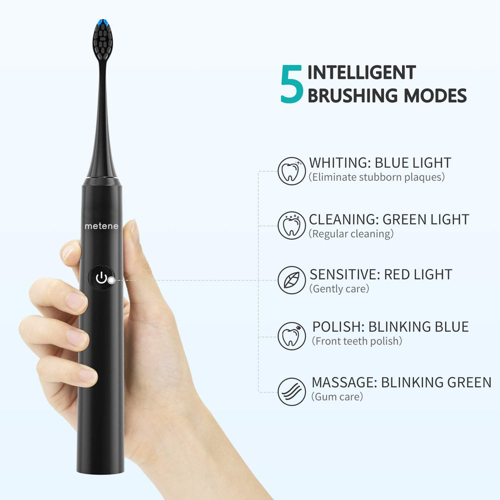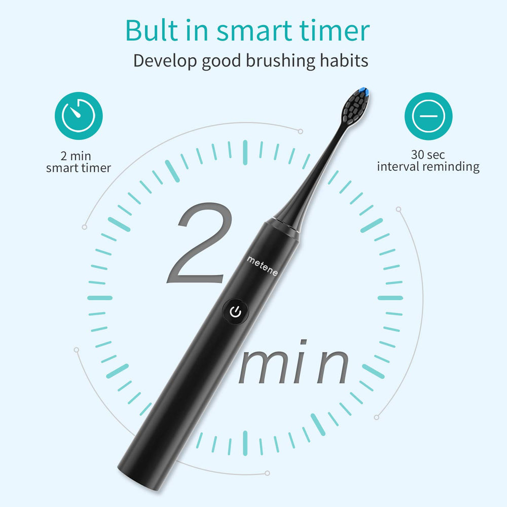 - ♥ 【40,000 VPM Sonic Toothbrush】- This electric toothbrush equipped with ultra powerful and industry-leading maglev motor, Metene electronic toothbrush vibrates 40,000 times per minute. This electric toothbrushes for adults can efficiently remove up to 300% more stains and plaque. The mechanical toothbrush’s cleaning ability is 10 times that of most ordinary toothbrushes. Get a thorough cleaning with reduced noise and has less vibration sense in the palm of your hand.